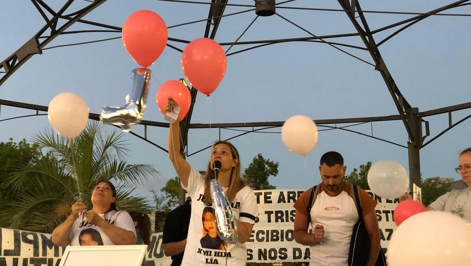 Hoy por la tarde, la familia de la joven realizó una sentada en la plaza San Martín. Llevaron globos blancos que soltaron al cielo en memoria de Lía. Previo a ello, Alejandra leyó una carta para expresar cuánto la extrañan.