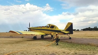 La aeronave comenzó sus tareas de la pista del aeroclub, donde es abastecida de agua por el camión tanque de la Municipalidad local, junto a Bomberos destacados en el lugar para colaborar en la recarga. Este medio aéreo se suma al avión observador con base en Santa Rosa, que permanece asignado de manera permanente a la Provincia y que viene trabajando en la zona desde el inicio del siniestro, brindando información clave para la toma de decisiones operativas y la planificación de los abordajes al fuego.