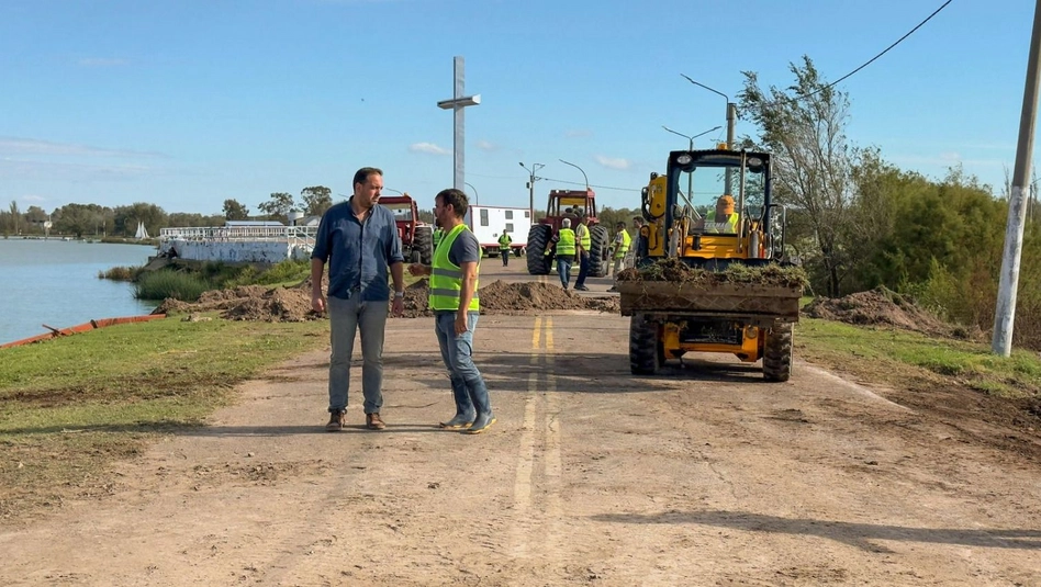 Este sábado, el Intendente Luciano di Nápoli recorrió algunos puntos de la ciudad donde se realizan tareas relacionadas con la emergencia. Estuvo en la zona de bombas de la Laguna Don Tomás para supervisar el operativo de trasvasamiento; luego, se trasladó a los hoteles donde se alojó a las familias evacuadas para reunirse con ellas en persona. Cerró la recorrida en Avenida Arturo Illia, donde cuadrillas municipales realizan trabajos de limpieza del canal con pala mecánica, camiones y motoniveladora.