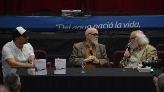 Acompañado por el secretario de Cultura, Pablo Lucero, y el escritor y periodista Juan Sasturain, agradeció a la editorial La Pampa Edita, dependiente de la Secretaría de Cultura “por haber hecho posible la reedición” y por la “rapidez de la concreción, pero sobretodo entender que era necesaria la reedición de este libro”.