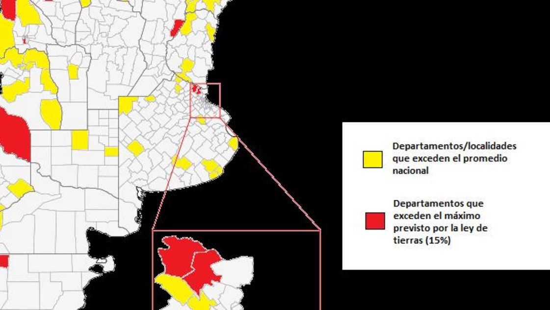 Según precisaron, actualmente hay 36 departamentos "que ya exceden el límite fijado por la ley. Y hay cuatro casos –Lácar (Neuquén), General Lamadrid (La Rioja) y Molinos y San Carlos (Salta)– donde la extranjerización supera el 50%. Todos ellos concentran bienes estratégicos como agua dulce o recursos minerales. A su vez Iguazú (Misiones), Ituzaingó y Berón de Astrada (Corrientes), y Campana (Buenos Aires) —todas localidades sobre la principal vía fluvial navegable del país, el río Paraná— superan ampliamente el 30%. El patrón es claro: las situaciones más críticas se dan en zonas fronterizas —tanto en el norte como en la cordillera— y en territorios con recursos hídricos, mineros o ventajas logísticas como puertos".