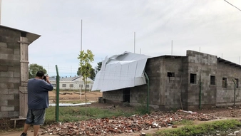 Por otro lado, en el Club Argentino, ubicado en la intersección de las calles Duval y Antártida Argentina, el viento voló el techo de una parte de construcciones nuevas que habían sido levantadas hace poco tiempo.