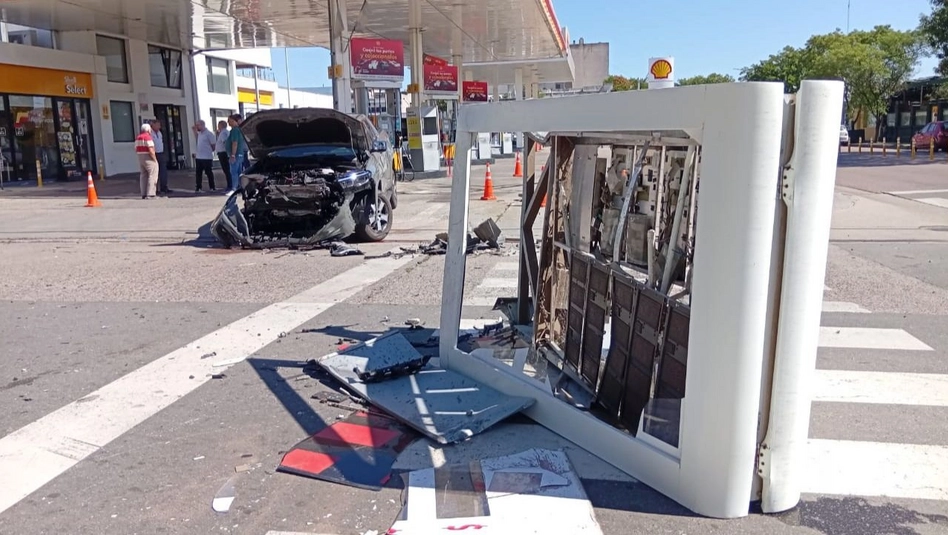 "Al tratarse de un vehículo con caja automática, el auto continuó avanzando sin control. La dramática secuencia no terminó allí. El Nissan Sentra continuó avanzando por calle 24 hasta la zona de la estación de servicio Pico Servicio Shell, donde embistió una camioneta que estaba estacionada dentro del predio, destrozándole completamente la parte delantera. Sin detenerse, el auto todavía avanzó algunos metros más y arrasó con el cartel indicador de precios de combustible de la estación, desplazándolo violentamente entre 10 y 15 metros por la fuerza del impacto", indicó el sitio En Boca de Todos.