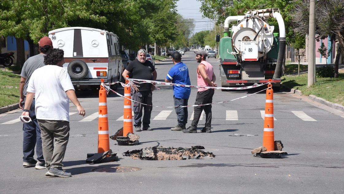 La situación fue advertida por vecinos y vecinas de la zona, que se comunicaron con esta redacción para dar conocer el hecho. El episodio se registró sobre el mediodía, pasadas las 13, en la intersección de México y Chile. Por allí transitaba un vehículo del organismo municipal, cuando el asfalto cedió.