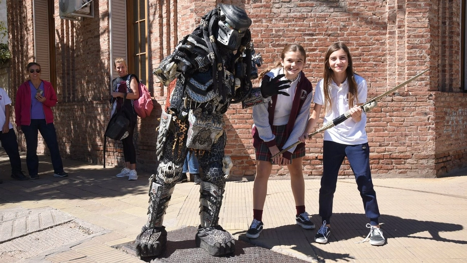 Y ese andar por la calle se trasladó luego hacia las rutas, porque Martel ya recorrió diez países de Latinoamérica gracias al traje similar al que utilizó el monstruo que intentaba ser neutralizado por el personaje de Arnold Schwarzenegger en el filme nacido en los estudios de Hollywood.