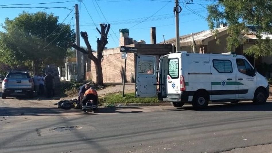 Un hombre debió ser hospitalizado, con fracturas en su pierna derecha, a raíz del choque entre una camioneta y una moto en la esquina de las calles Lordi y Autonomista de Santa Rosa.