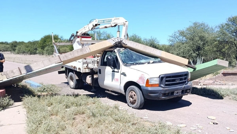 Desde la sede policial local le confiaron a este diario cuando el móvil llegó al lugar constató la información que les habían anticipado telefónicamente. “Constatamos que, por razones que se están investigando, el brazo flexible y balde del rodado colisionó contra la superficie del arco de concreto, le produjo un quiebre en la base y la estructura cayó sobre la cabina”, reveló.
