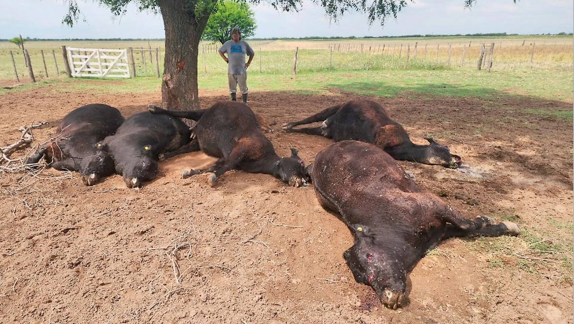 "Un segundo, diez millones de pesos". Con esa expresión, un productor de la zona de Quehué dio a conocer que un rayo mató a cinco vacunos y un ternero.