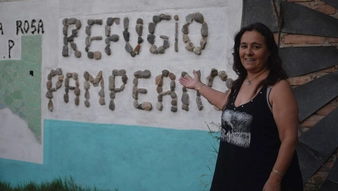 El lugar fue levantado por Marta. Hizo garajes con el tamaño justo para los vehículos. “Los hice con botellas que contienen agua y tierra y cemento”, dijo orgullosa la mujer y mostró las paredes escritas con mensajes de otros viajeros. También hay pinturas que representan el paisaje pampeano, con mosaicos dibujó el mapa de La Pampa y resaltó el departamento Capital y con piedras escribió “Refugio Pampeano”. Hay un comedor con mesas, sillas, heladera y una cocina, y en el espacio verde de la vivienda es donde se puede acampar.