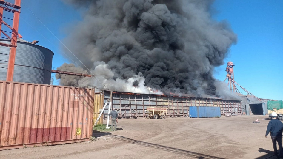 El siniestro se registró el jueves por la mañana cuando las llamas se iniciaron en un galpón ubicado en el predio del ferrocarril y donde la firma agropecuaria almacena cereal entre otros productos agropecuarios.