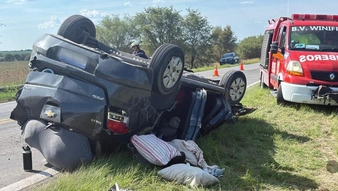 Según informó el portal Info Wini, el siniestro vial ocurrió alrededor de las 17hs. de hoy y acudieron personal de Bomberos y de la comisaría local, quienes al llegar al lugar observaron que el automóvil, un Chevrolet Spin, estaba volcado con sus cuatro ruedas hacia arriba.