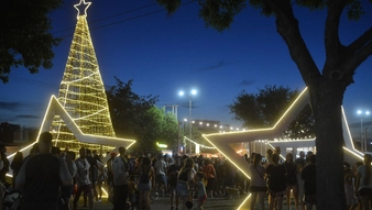La ornamentación navideña incluyó arcos iluminados que atraviesan el sector de juegos y una enorme esfera sobre la avenida Spinetto, donde la comuna colocó un muñeco gigante Papá Noel para que todos se saquen fotos. Las tres estrellas llenas de luces y el pino se ubican sobre el sector gastronómico. Allí se realizó el pequeño acto ayer por la noche.