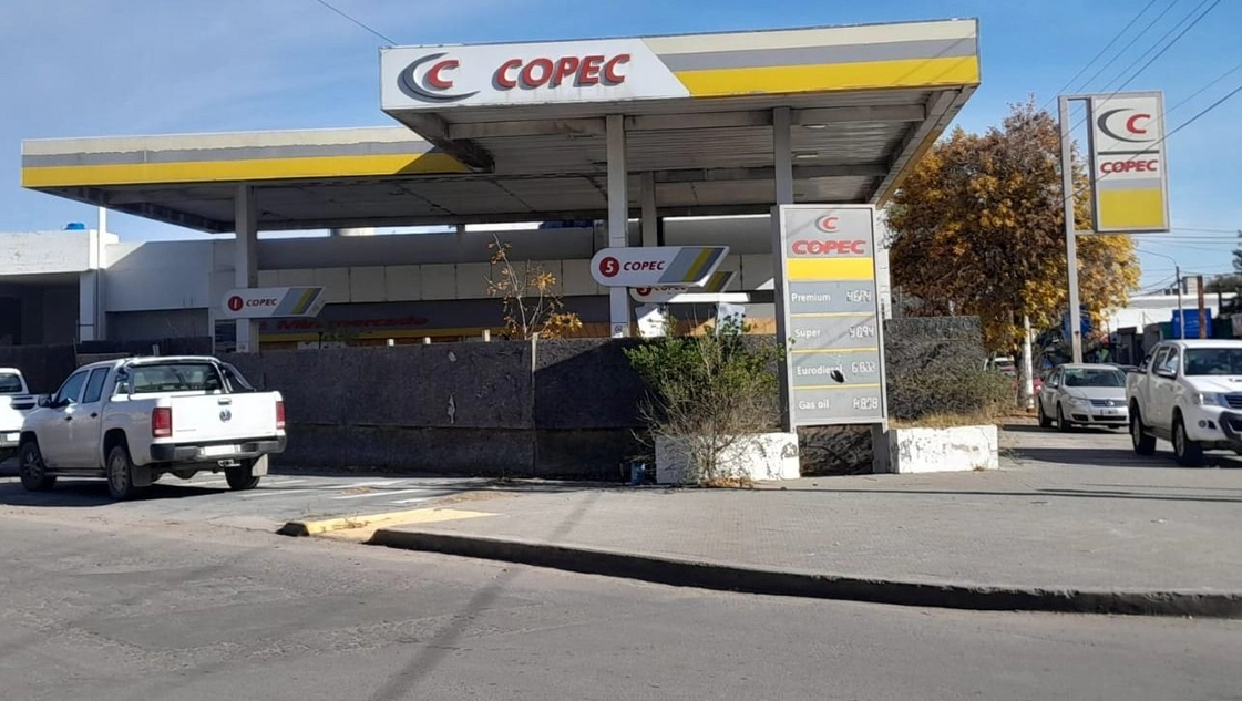 En la vieja ex estación de servicio Copec de Suazo Hermanos, echando una mirada entre las endijas que deja el vallado de madera se puede ver el estado ruinoso de la playa y dos viejos surtidores que alguien se encargó de destrozar.