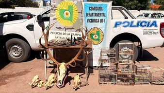 Asimismo, se iniciaron actuaciones por infracción a la Ley Provincial N° 1194, tras el secuestro de una cabeza de ciervo colorado de 15 puntas sin el correspondiente precinto, además de astas de ciervo, aves silvestres protegidas, cráneos de jabalí y un cráneo de puma, quedando las aves a disposición del área de Fauna.