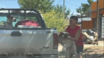Un joven de Victorica rescató a un perro que se estaba ahorcando con su correa, tras caerse de la caja de una camioneta que estaba estacionada.