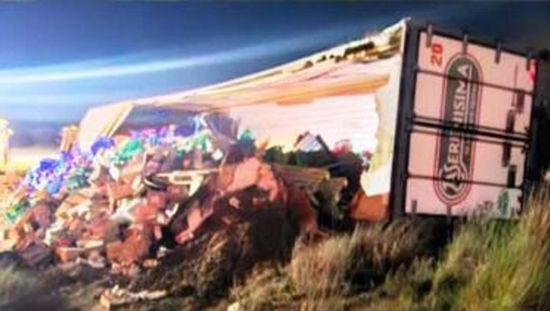 Volcó un camión cargado de productos lácteos en la Ruta 152, cerca de General Acha