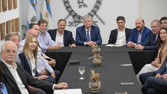 Sin representantes de La Cámpora.La cumbre de mandatarios del PJ y legisladores nacionales no contó con la presencia de integrantes de La Cámpora. Esto fue interpretado por algunos medios nacionales, entre ellos La Política Online, como un nuevo capítulo en las tensiones internas dentro del peronismo. La reunión, que tuvo como objetivo trabajar en una agenda ante el impacto económico de las medidas del Gobierno nacional, fue enmarcada en esta disputa. "En rigor, la cita de los gobernadores con los diputados y senadores dispuestos a expresarlos en ambas cámaras puede leerse como otro capítulo de las tensiones internas del peronismo, sacudido por el sector más cercano a Cristina Kirchner y La Cámpora y otro espacio, acaso pendiente de la proyección de Kicillof, que reclama mayor atención en la agenda parlamentaria para los temas del interior", señaló un artículo publicado por La Política Online. En esa línea, mencionaron que el mandatario bonaerense compartió la mesa, además de con sus pares, con los diputados Jorge Taiana, Santiago Cafiero, Juan Marino, Hugo Yasky, Hugo Moyano (h) y Victoria Tolosa Paz, Ariel Rauschenberger, Varinia Marín, además de los senadores Daniel Bensusán y Florencia López. Por otro lado, el citado medio reveló que tras la cumbre Kicillof visitará la provincia de Formosa este miércoles junto a Insfrán, para recorrer obras de infraestructura en áreas de salud y educación. "Su primera foto de campaña va a ser en Formosa, como hizo Néstor Kirchner", se ilusionó un entusiasta del norte.