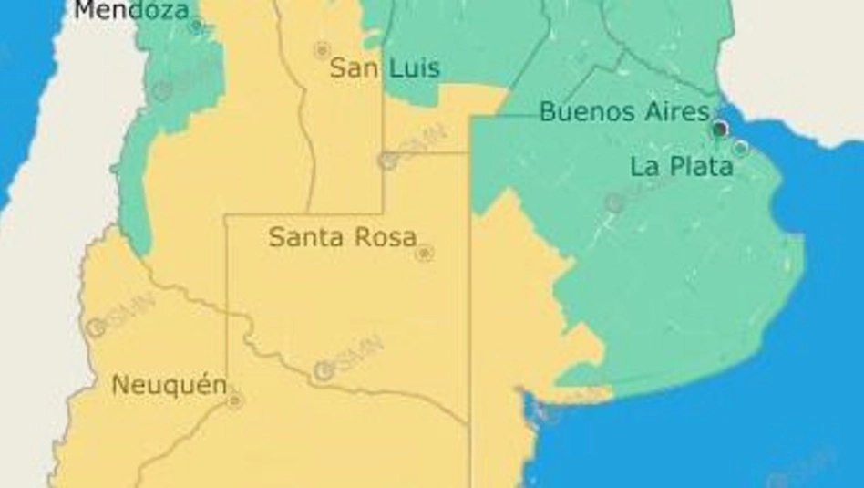 En cuanto a la provincia de Buenos Aires, el alerta amarillo es para las localidades de: Norte de Bahía Blanca - Oeste de Patagones - Oeste de Villarino - Puan - Zona baja de Coronel Pringles - Zona baja de Coronel Suárez - Zona baja de Saavedra - Zona baja de Tornquist.