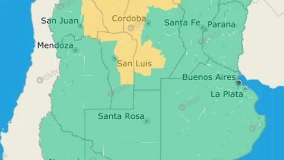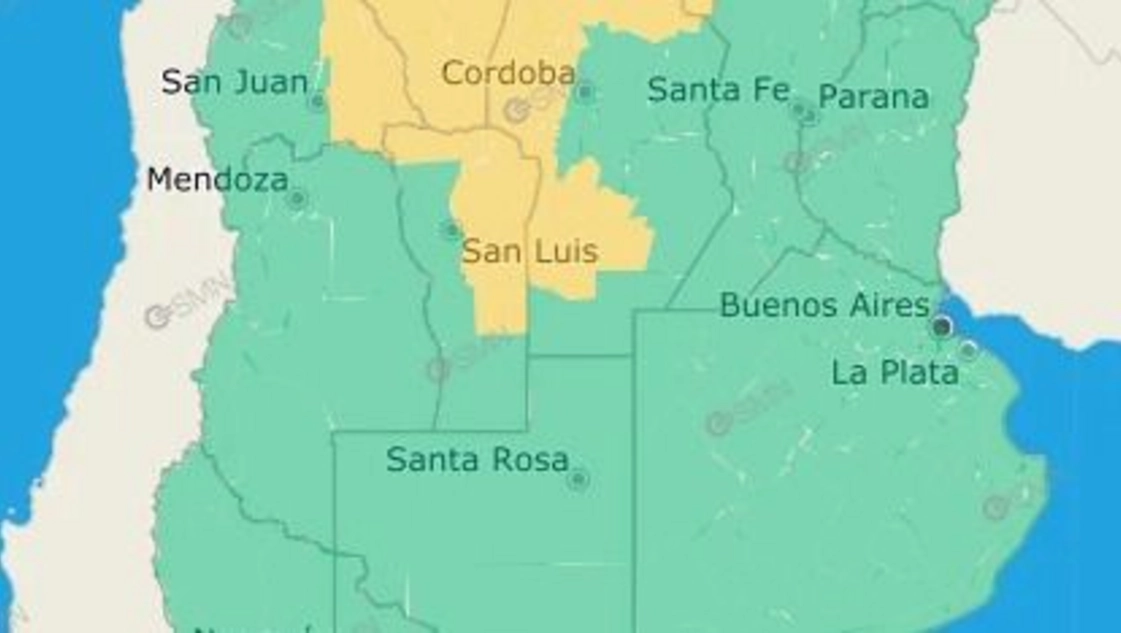 Para este jueves 5 de marzo, el Servicio Meteorológico Nacional (SMN) emitió (a las 5.50 horas de la mañana) un alerta amarillo por tormentas potencialmente severas. Los territorios en nivel amarillo de alerta son: el noreste de San Luis y el noroeste de la provincia de Córdoba.