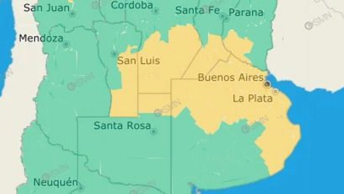 Por lo tanto, desde el Servicio Meteorológico Nacional (SMN) indicó, en el alerta de las 6.11 horas, un alerta amarillo para la franja central del país. Si bien se espera que la humedad y el calor para este viernes se sostenga, se espera que vaya disminuyendo para la tarde noche y que vayan en aumento las probabilidades de lluvias. Pueden ser episodios leves y aislados, pero con el contraste del frente frio que empieza a llegar, alguno de estos eventos pueden llegar a ser de moderados a severos.