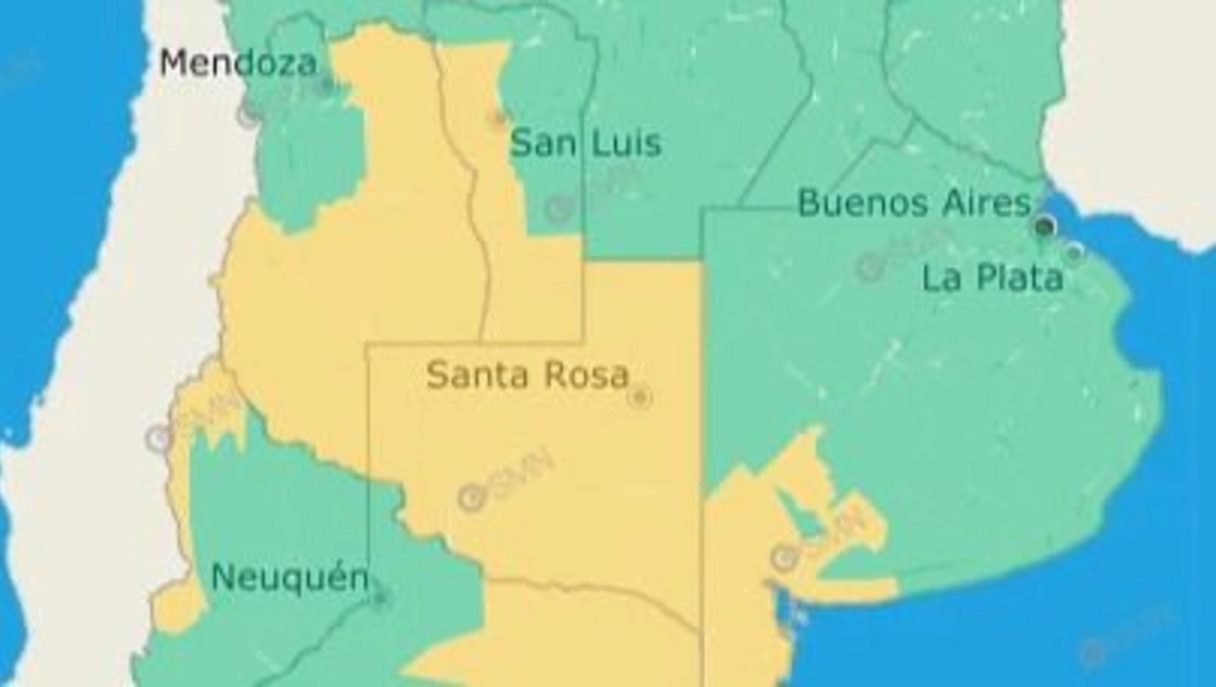 La Pampa: toda la provincia de La Pampa se encuentra en alerta amarillo.