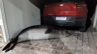 Apareció un lobo marino en el garaje de una casa