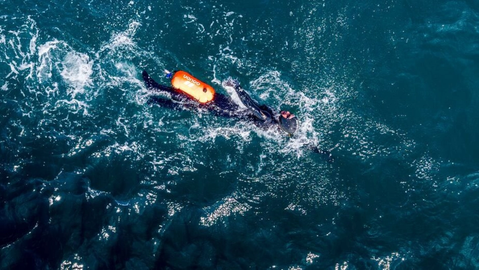 La preparación fue clave para soportar el frío durante toda esa hora y esos casi nueve minutos en los que estuvo sumergido en el agua. El traje de neoprene fue fundamental.