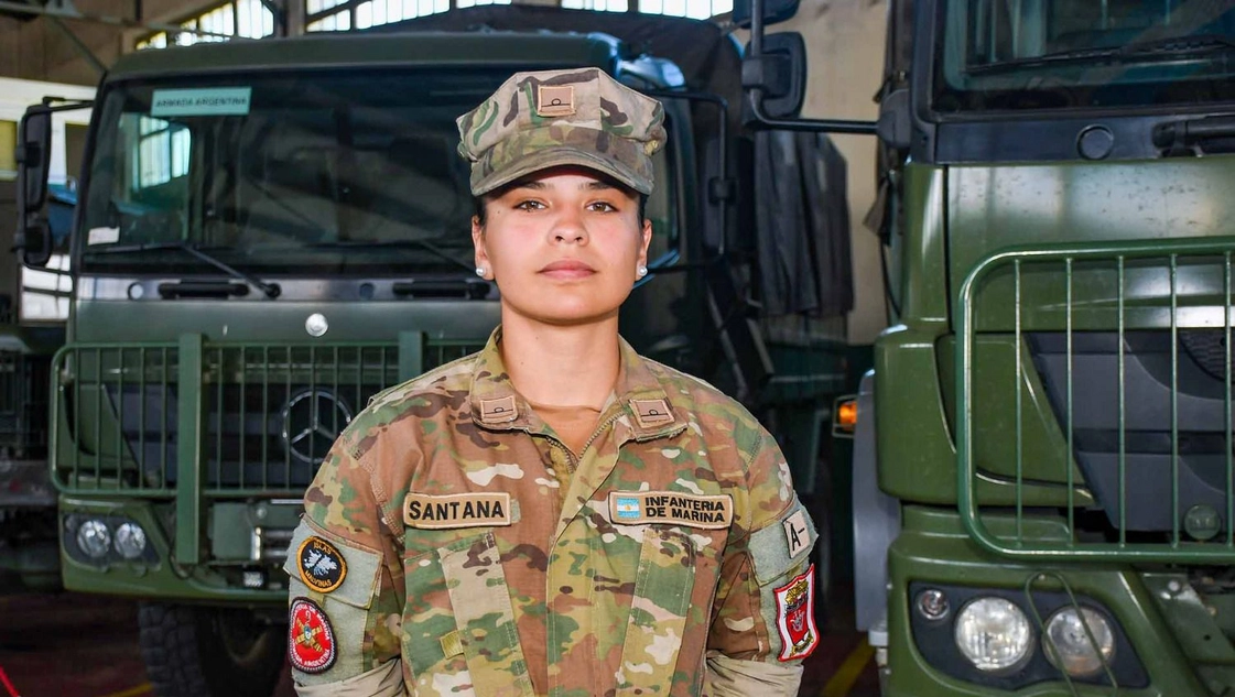 La Guardiamarina Santana es oriunda de la localidad de Hernandarias, provincia de Entre Ríos, pero actualmente forma parte de la Infantería de Marina de la Armada Argentina y está destinada en la Brigada de Infantería de Marina, que se encuentra en Puerto Belgrano, al suroeste de la provincia de Buenos Aires.