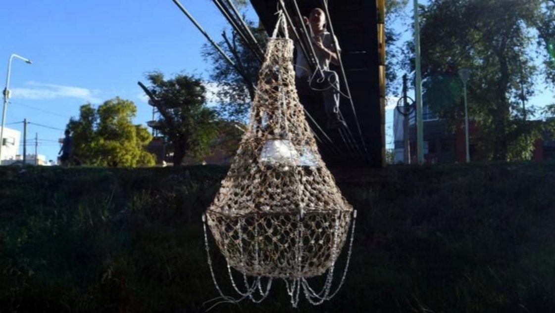Este lunes por la tarde, 374 días después de haber sido arrastrada por la naturaleza, la lámpara fue colgada nuevamente en el puente amarillo que se ubica en las calles Fuerte Argentino y Salta, según informó el diario La Nueva.