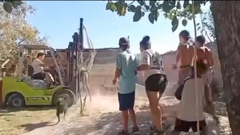 Entre ellos empezaron a buscar contactos y hacer llamadas, hasta que lograron que un comercio de la zona les prestara un montacargas. Con la maquinaria imprescindible ya en su poder, los vecinos empezaron a pasar sogas por debajo del abdomen del animal.