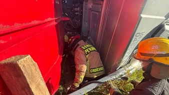 Murió un camionero mientras manejaba, volcó y se acercaron a faenar la carga