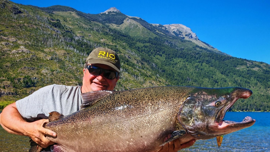 “Fue un día mágico. Salimos con Martín John, un pescador de la vieja escuela, muy intuitivo y ordenado. Estábamos haciendo el scouting y de repente la línea se prendió. La pelea duró entre 20 y 25 minutos. Fue increíble, porque el salmón, recién llegado, demostró toda su fuerza. Sacaba línea, se zambullía, volvía a subir… una pelea intensa que nunca habíamos visto”, relató Pérez Llahi, guía de pesca del Parque Nacional Lago Puelo.
