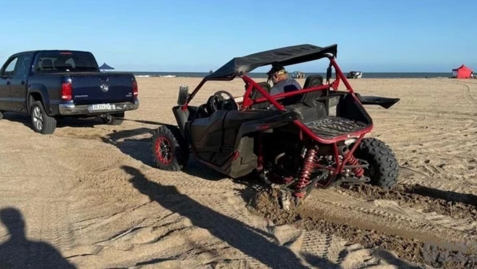 Además, los testigos indicaron que el UTV circulaba a gran velocidad por la arena y de golpe perdió el control y volcó varias veces. Por el brutal impacto, se desprendió una de las ruedas traseras y el vehículo quedó destruido.