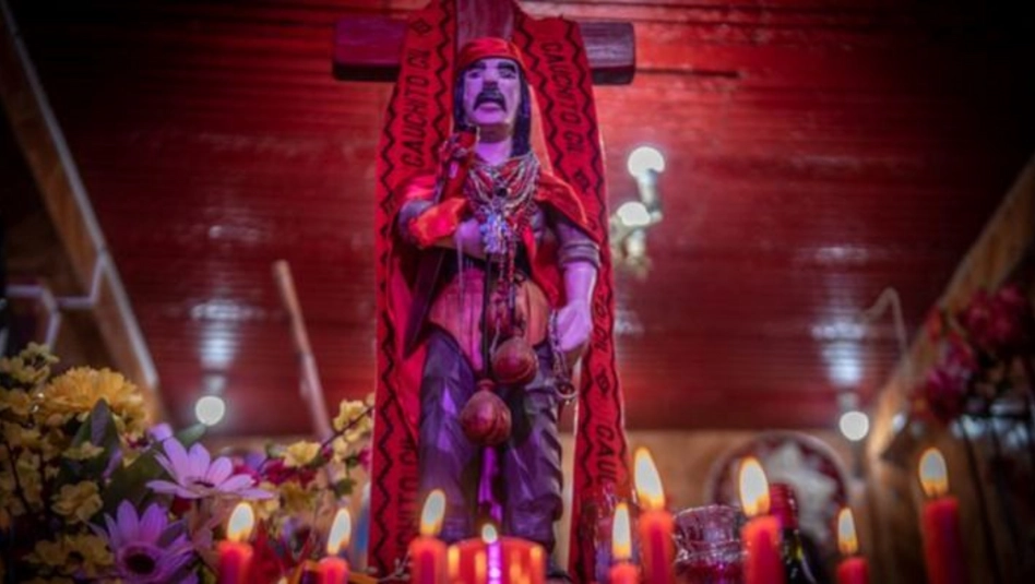 Hay una imagen inconfundible, que se repite a lo largo de todas las rutas de la Argentina, en los barrios humildes y en todos los accesos a los pueblos: es la imagen de una cruz de madera, con banderas rojas que se agitan por el viento y, en el centro, inconfundible, el Gauchito Gil, con camisa celeste, vincha roja y pañuelo al cuello.