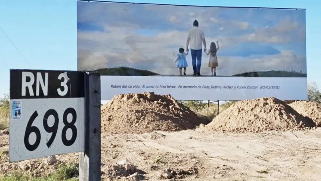 “Rubén dio su vida. El amor lo hizo héroe”, se lee en el cartel. Desde hace casi un año que Marina Haag, la mamá de las pequeñas, pide igual un rezo en redes sociales a las autoridades locales “que Rubén sea reconocido como héroe en Bahía Blanca”. El cartel ya está instalado. Y este sábado participarán los familiares, funcionarios locales, vecinos y amigos de Zalazar, van a rendir homenaje a este muchacho de 43 años, padre de dos hijos, que se desempeñaba como chofer.