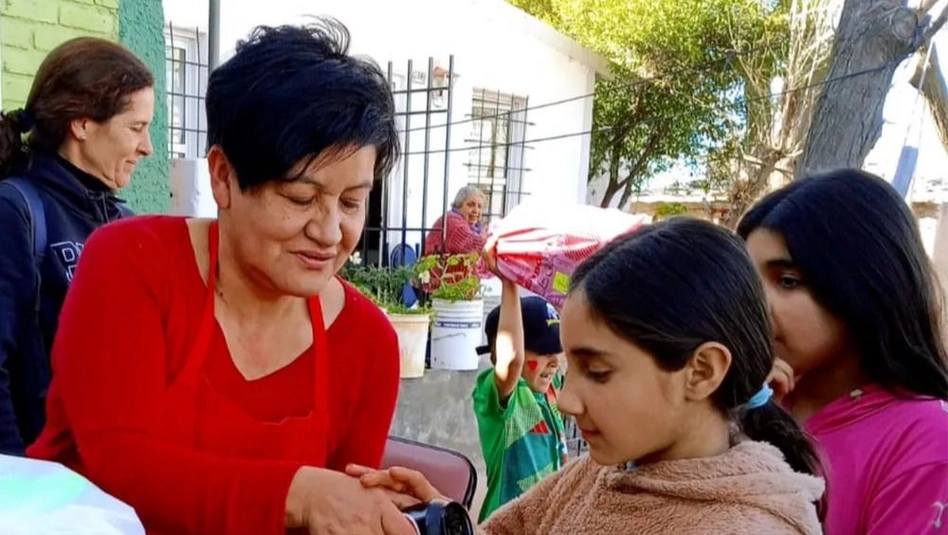 Una mujer que está a cargo de un comedor cumple años y pide que regalen alimentos, útiles y ropa